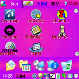 No more plain old ugly ZLauncher themes! This unique theme looks good on any color screen, with its 2-tone purple color scheme. Included are 2 optional bitmap backgrounds (one is pictured in the screenshot). This theme is tested on Palm Hi-Res OS5 color handhelds, but should work with Sony Hi-Res, too.